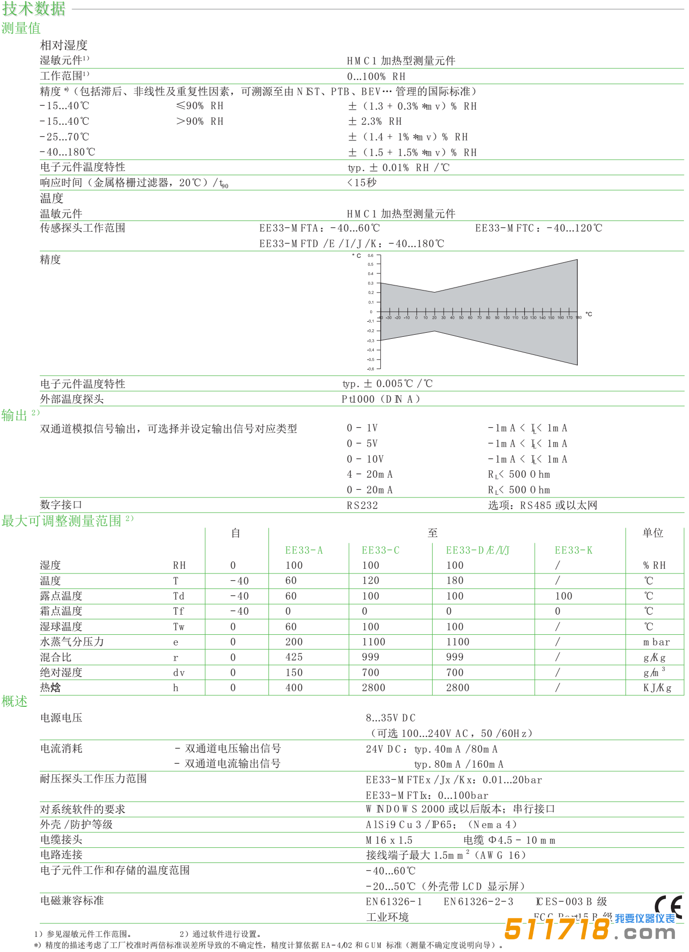 EE33系列工業(yè)變送器是一款為應用在高溫、高濕、污染和結(jié)露等苛刻環(huán)境中準確測量溫濕度而設計的工業(yè)變送器。