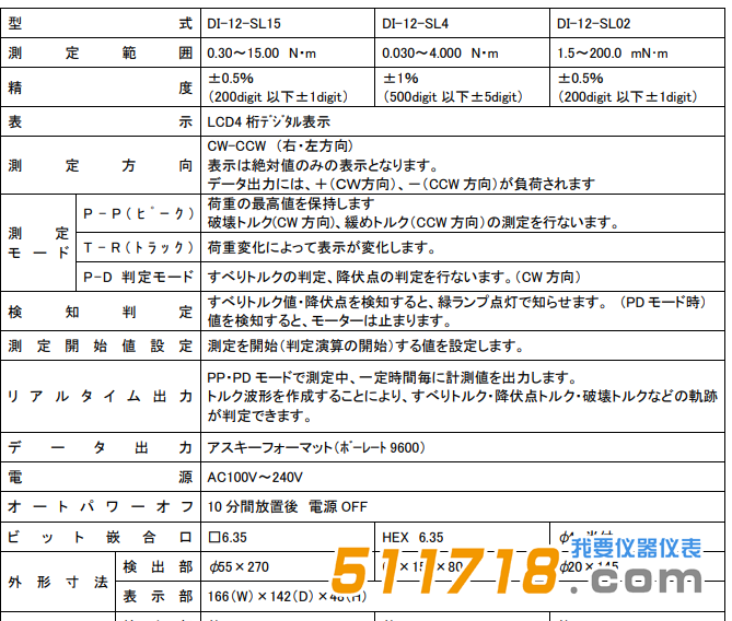 日本cedar思達DI-12-SL15扭力測試儀產品參數:
